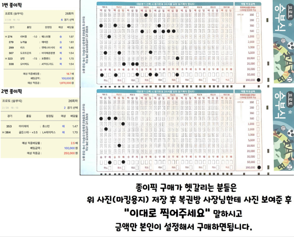 종이픽 = 복권방 이동 > 마킹 > 구매
